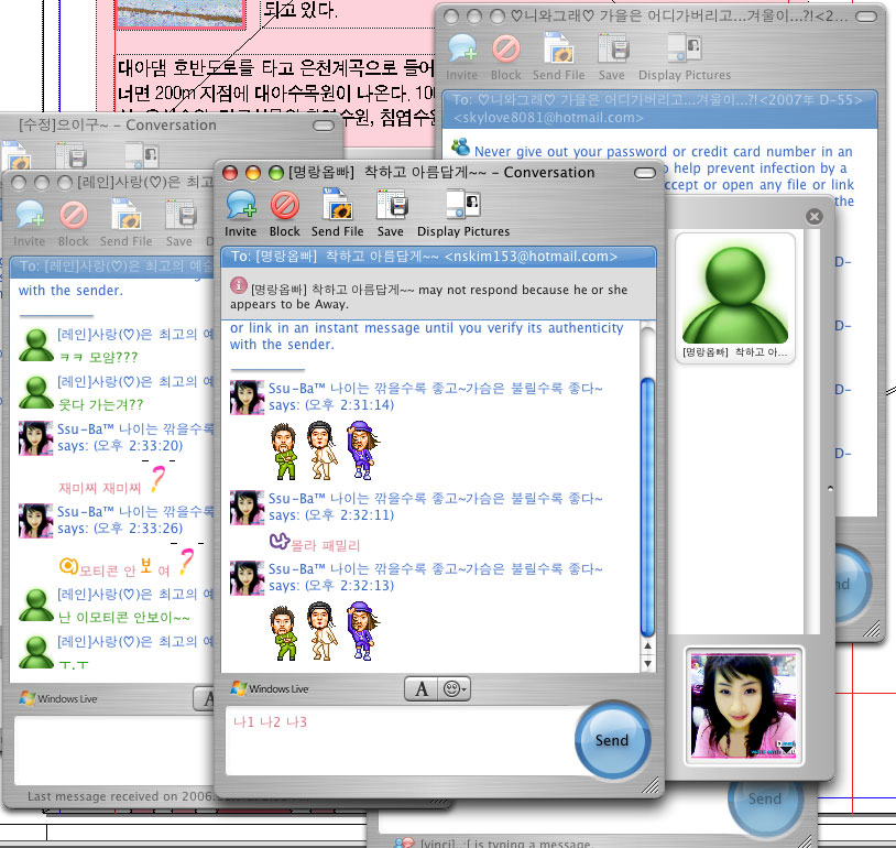 메신져에서 쑤바가 마구 날리던..