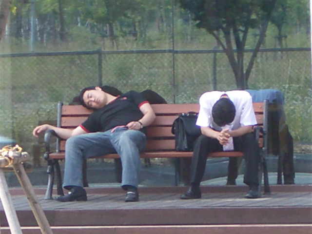 어느 날 오전의 이마트 외부 쉼터에서