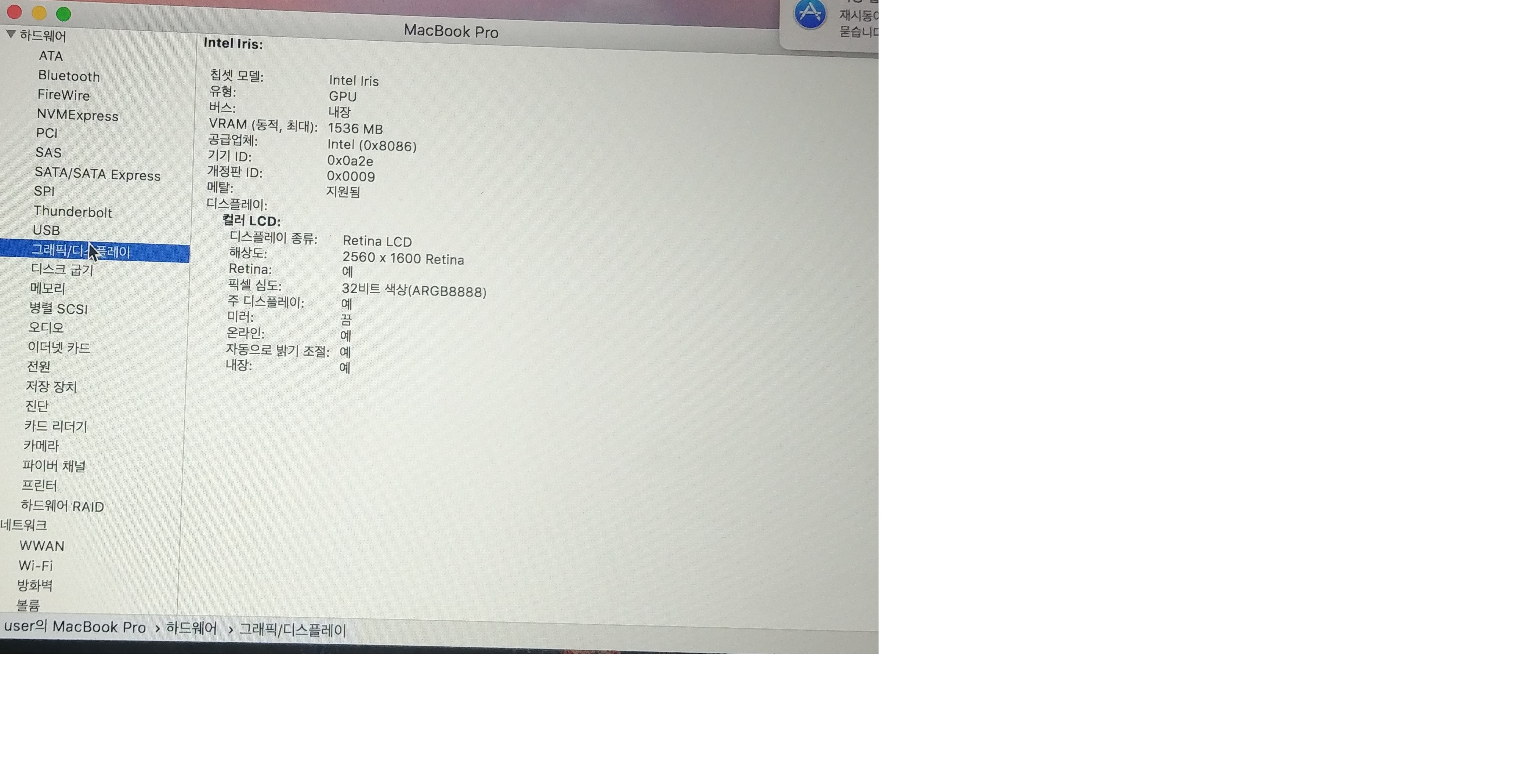 구매했던 스펙 그대로 입니다.