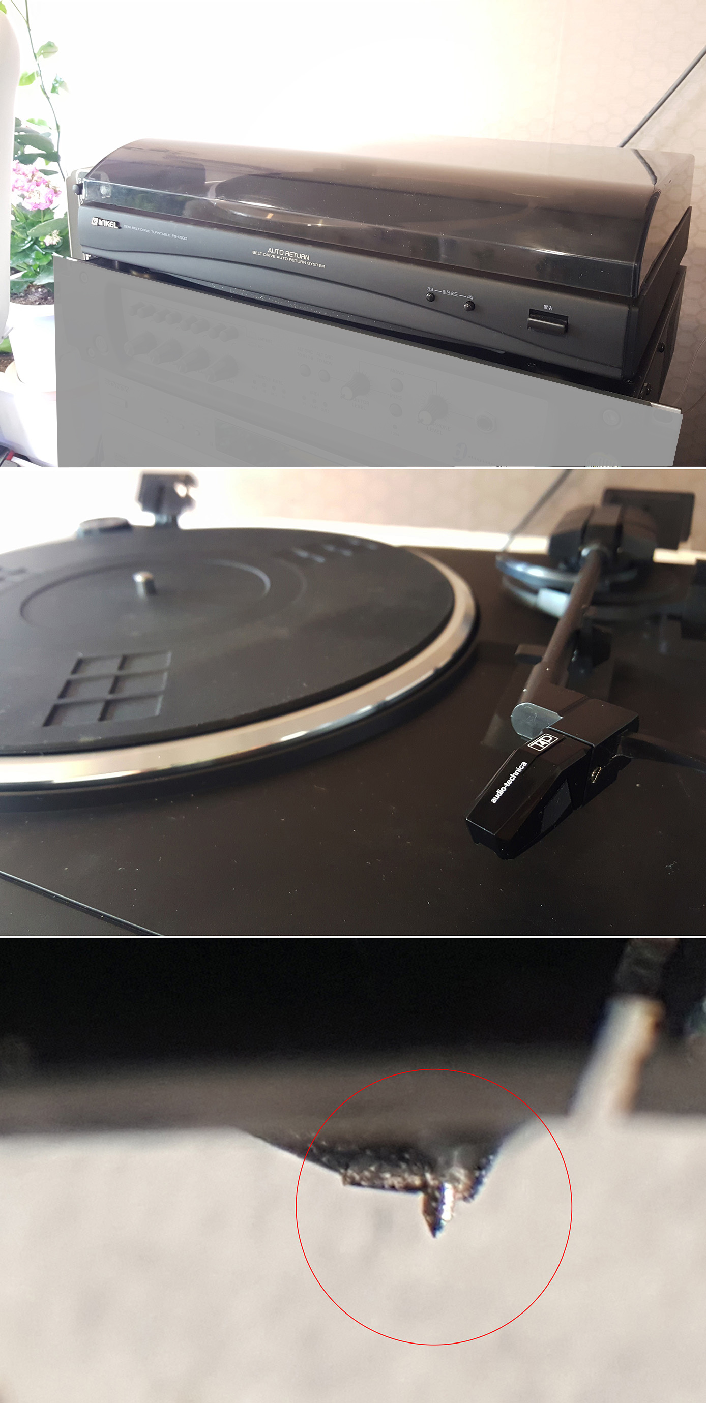 고무벨트 최근 새것으로 교체, 오디오테크니카 바늘 최상의 상태.