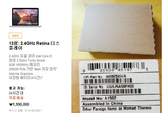 박스도 뜯지않은 신형 맥북프로 레티나 팝니다