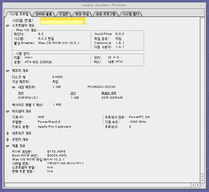 맥OS 9.2.2 단독부팅모델입니다.