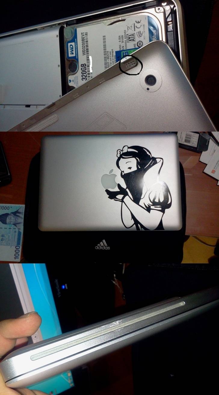 시디롬 슬록입구에 찍힌자국이 있구요.(사진)
