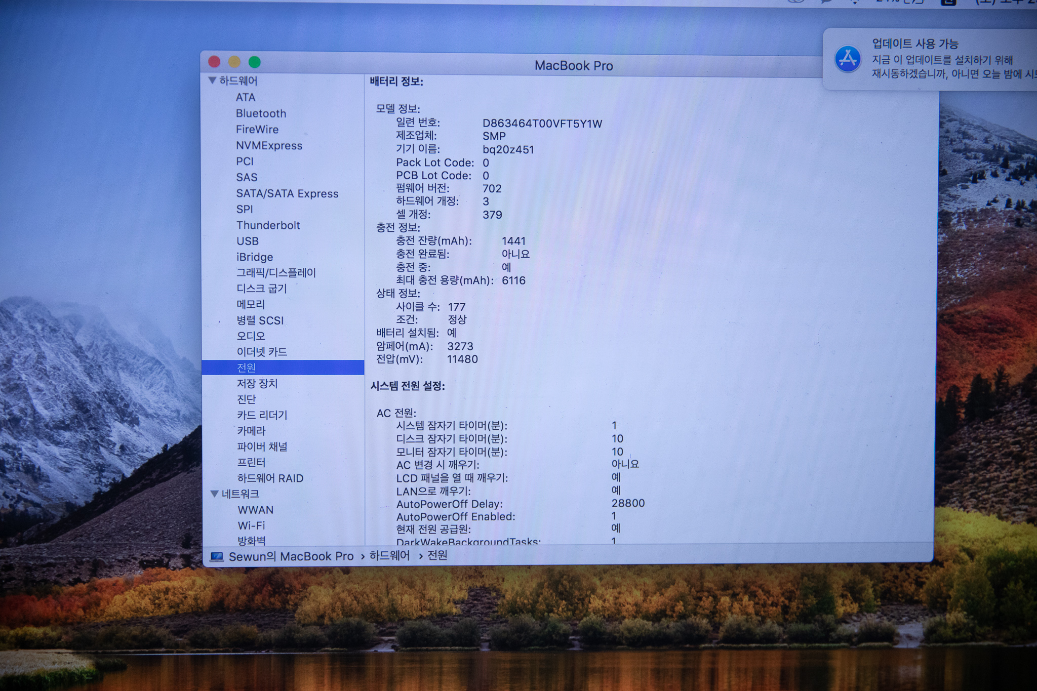 위 사진과 같이 램 8gb, ssd 256, 사이클 수 166, 배터리 최대량 6116 으로 상태 좋구요