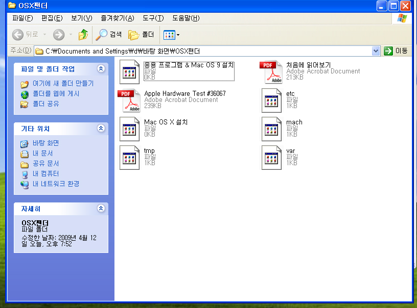이시디가 한글시스템과 어플리케이션(mac os 9)폴더를 부팅용으로 구운겁니다.