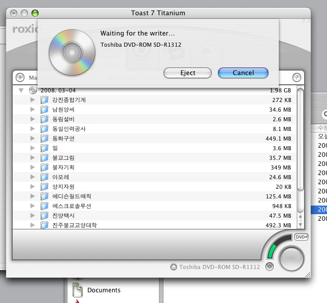 현재 사용하시는 CD-ROM은 콤보로써 DVD-RW가 안되는 모델입니다(DVD읽기만가능). 용량이 너무커서 그렇습니다. CD-RW를 사용하시려면650MB이하로 설정후 구우시고,그렇지않고 전체를 구우시려면 DVD-RW로 교체해서 구우셔야 됩니다. ++++++++++++++++++++++++++++++++++++++++++ "맥사이트(A/S점/복구)"아이디 누르고 (자기소개)클릭후 내용을 참조하세요..