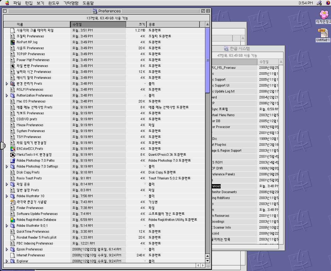 emoticon_096 한글시스템>프리퍼런스 폴더에 있는 파일들은 보이는 아이콘 모양은 정상입니다.