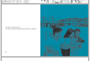 방법1. 1. 사진을 그레이스케일로 만든다. 2. 컨트라스트를 강하게 줘서 명암 대비를 강하게 해준다. 3. tiff파일로 저장한다. 4. 쿼크에서 불러들여와 전경색을 사이언 100%, 배경색을 먹 100%로 준다. 방법 2. 1. 듀오톤으로 지정 후, 사이언 100%, 먹 100%으로 지정 후 그래프를 사용해 수치를 잘 조정해준다. 아마 결과물로 봐서는 듀오톤으로 작업한 듯 하나 전 1번을 더 추천해드립니다. 2도 작업 시 듀오톤 작업은 자칫 잘못하면 필름 출력 시 기계가 이미지를 2도로 인식하지 못할 수도 있거든요. 사고 방지를 위해서 가장 정확하게는 방법1이 좋습니다.