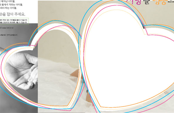 칼라프린트 보냈더니 왼쪽 하트는 사진에 네모낳게 모두가 다 나오구요(클리핑패스전혀무시한 모양으로)