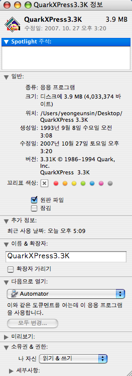 쿼크 프로그램을 정보입수한것을 보니 [원판파일]에 선택이 되어져 있는데..이것 때문인듯 합니다.