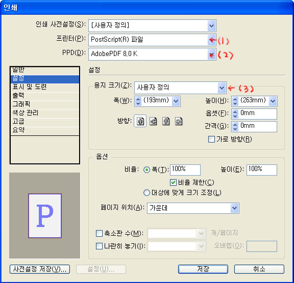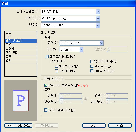 인디자인3에서 PostScript PS 저장 방법을 알고 싶습니다.