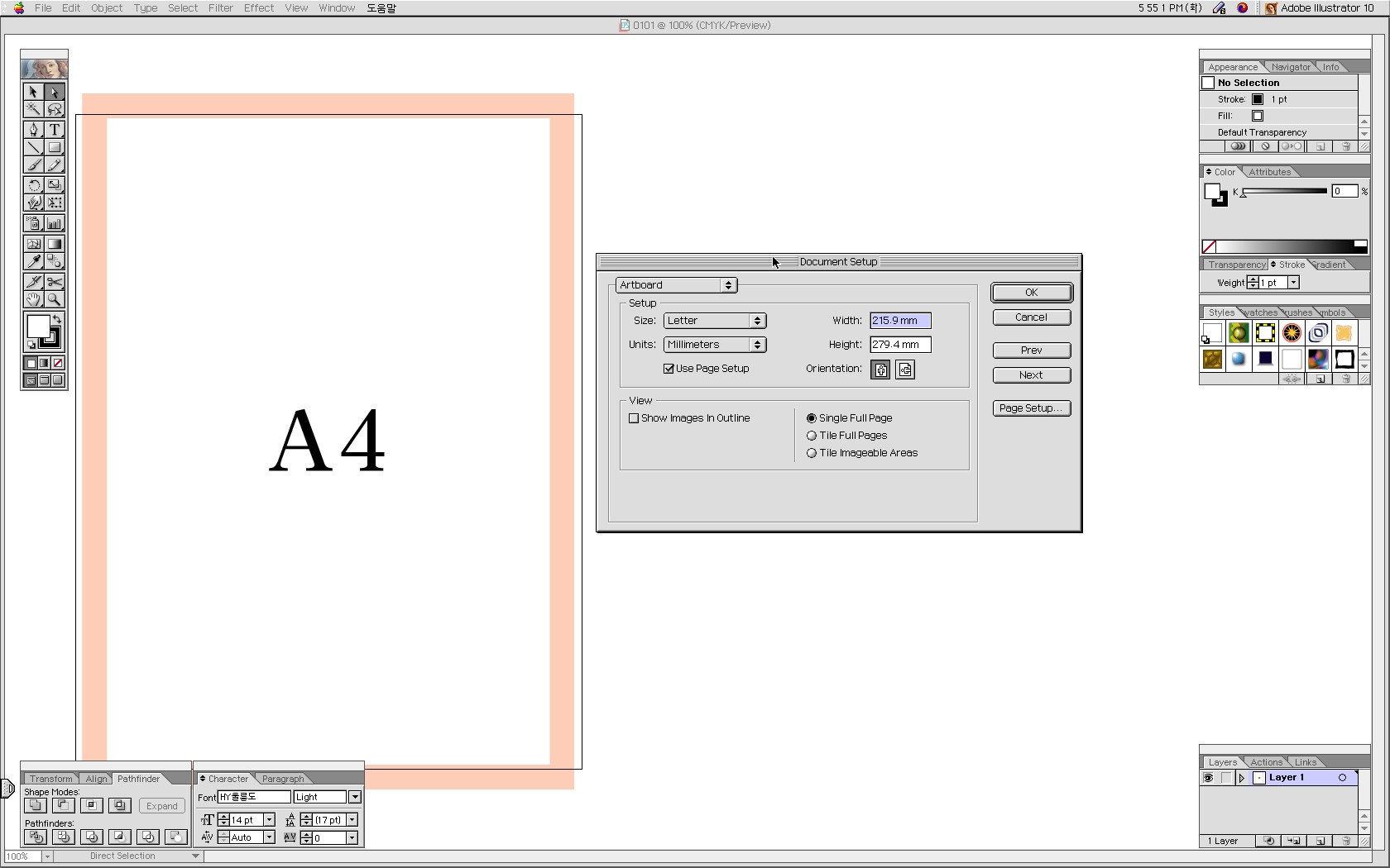 일러스트 페이지설정 알려주세요...
