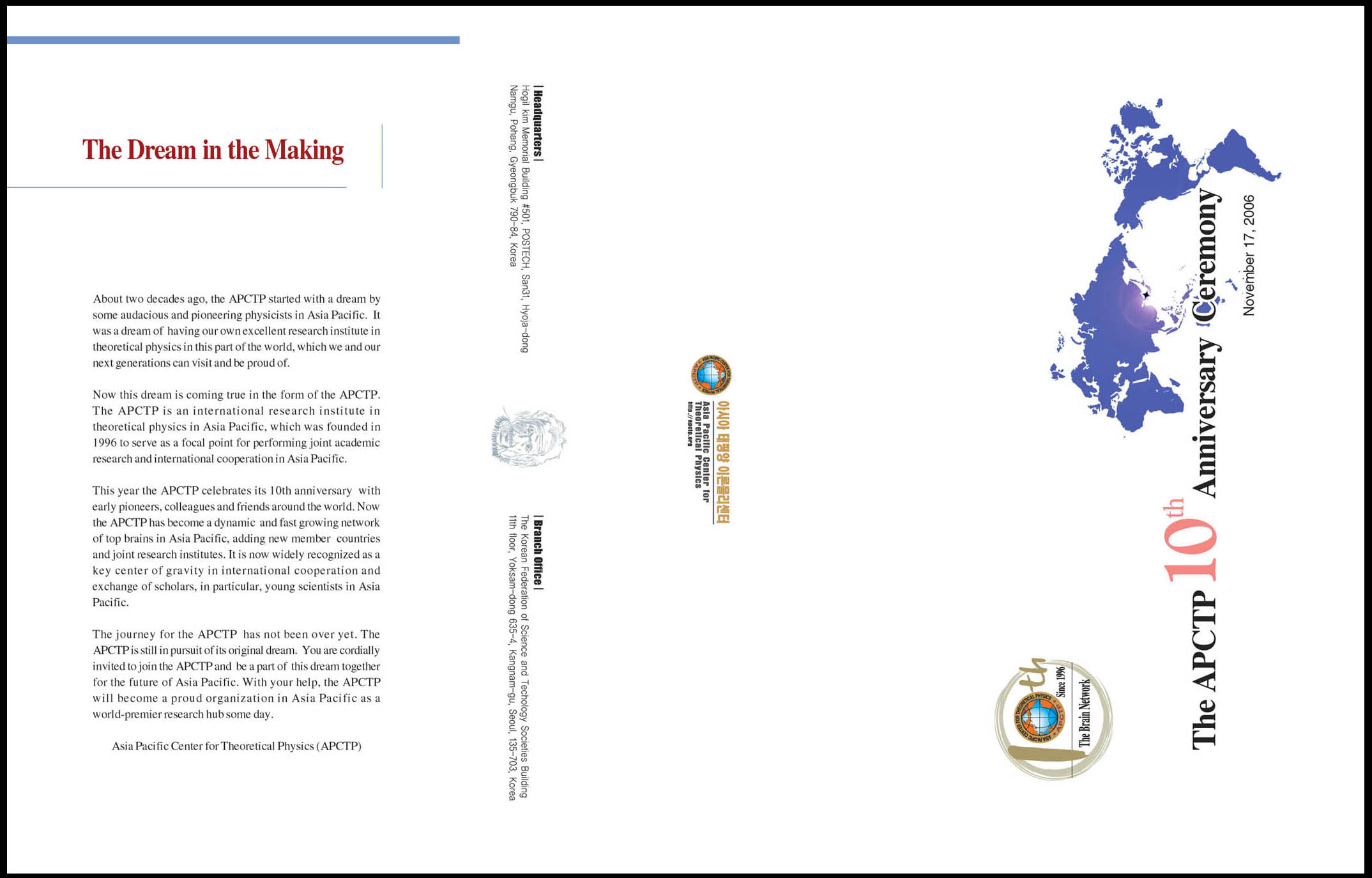 아시아태평양 이론 물리센터 10주년기념식 리플렛입니다.