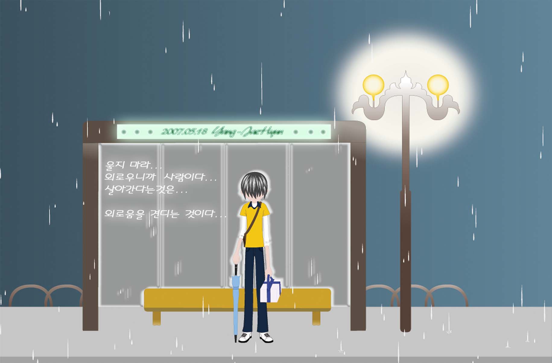 막차를 놓쳤다...아니 그냥...내가 보내버렸다... 오늘은 그녀의 생일이다... 그녀에게 마지막 생일선물을 주려고 구두를 샀다 예전...그녀가 나와 같이 명동거리를 걷다가 쇼윈도 속의 신발을 너무 이쁘다며 넋을 잃고 바라보던...그 구두다 날...떠나 다른 사람을 만나려고 그 구두를 ...그렇게...뚫어지게 바라 봤었나 보다 하지만...난...그녀의 집으로 가는 버스에 오르지 못했다 이 신발이 현재 그녀에게 행복을 안겨주는 그 남자마저 떠나게 할까 두려워서 일까... 구두 산다고 돈이 하나도 없다 .....비...도...오는데 ...집에 어떻게 가지 그녀의 생일날....난...외롭다 ㅠ.ㅠ