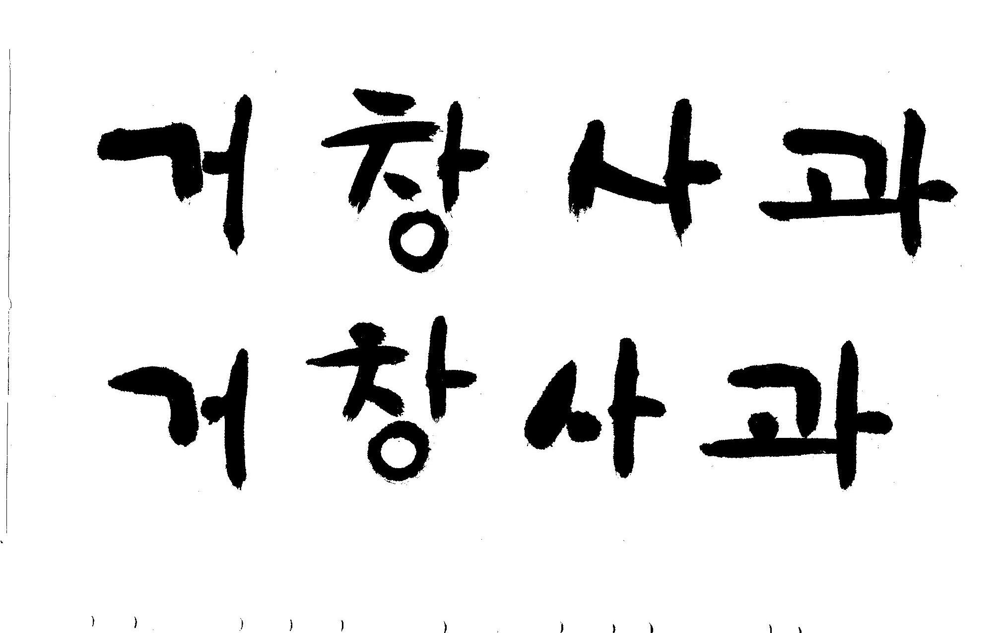 캘리 부탁드립니다. 김철호 일반 0 9636 2008.12.29 16:02 > > 안녕하세요? > 전문대 졸업하고 편집일 하다가 > 얼마전에 패키지쪽으로 이직했습니다. > '거창사과'라고 박스 디자인 주문이 왔는데요 > 일반적인 서체를 사용하니 기존 박스랑 별 차이가 없네요 > 많이 바쁘시겠지만 '거창사과' 캘리 부탁드립니다. > 유용하게 쓰시길..