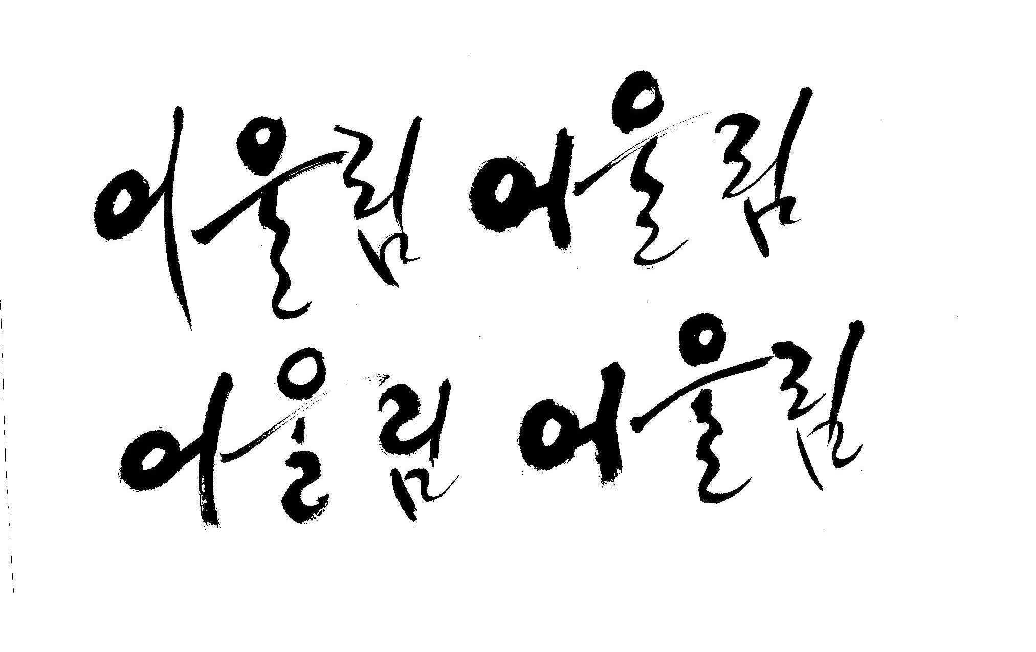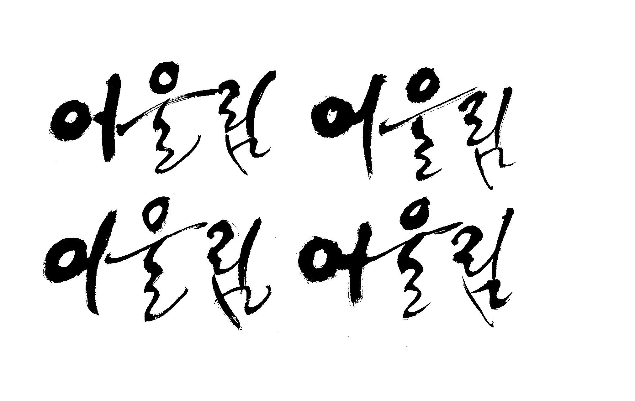 켈리 부탁좀 드릴께요~ 김철호 일반 0 10956 2009.01.14 10:49 > > > > > 책표지에 나갈 글씨로 '어울림'이란 켈리를 쓰고싶은데요... > > 도와주세요~ > > > 좋은 글이라서... > 긴....습작시간이 있었지만 > 결과물이 왜소하네요 > 유용하게 쓰시길... >